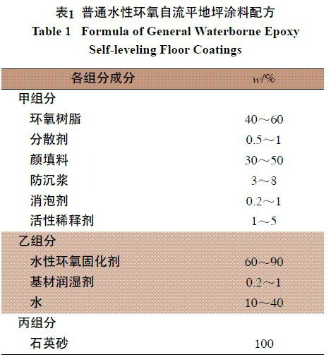 表1 普通水性環(huán)氧自流平地坪涂料配方
