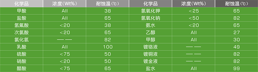 3.在100℃以下,能抵抗大部分酸,堿,鹽等化學試劑的腐蝕;